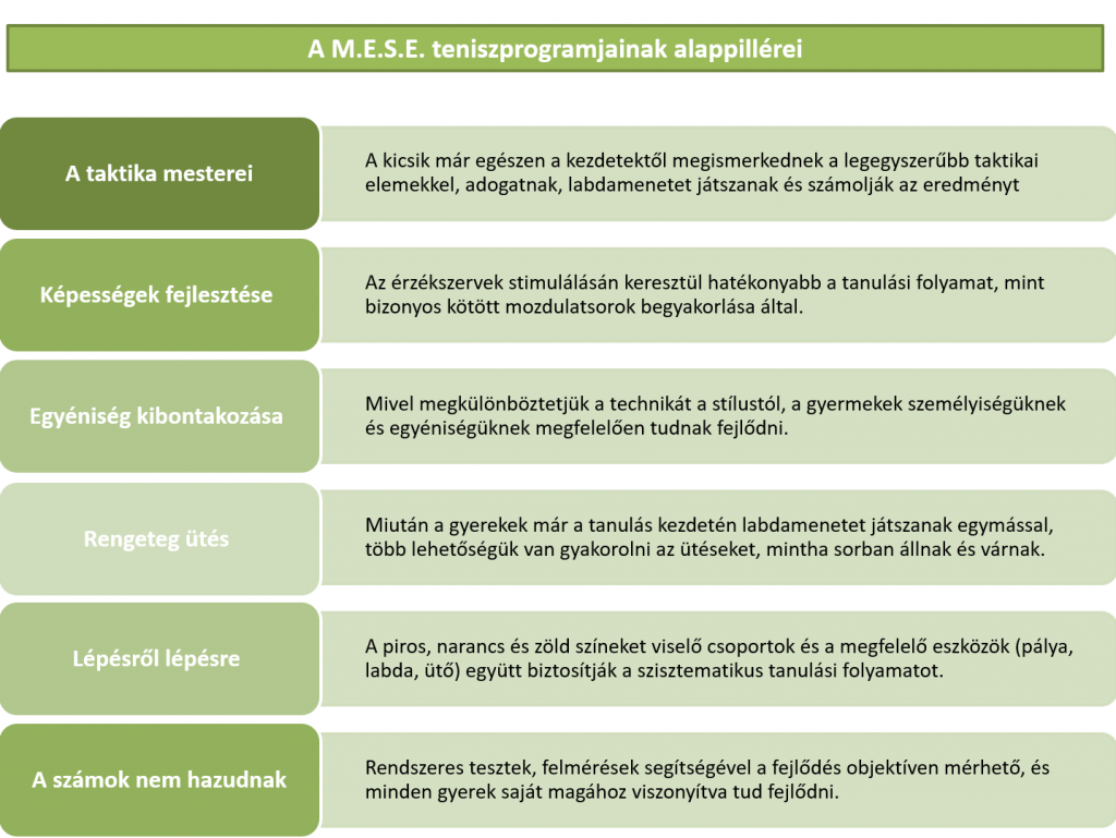 Programunk bemutatása érdekében összegyűjtöttük a legfontosabb érveket, amiért a M.E.S.E. Tenisz által alkalmazott Tennis Talents metodológia gyorsabb és hatékonyabb tanulási folyamatot eredményez, mint más hagyományos módszerek: